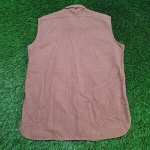 80s Woolrich USA made sleeveless shirt vest mens L brown cotton chamois twill gorpcore utility biker style