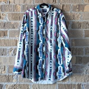 VTG 80s Wrangler Chamois Southwestern Aztec Tribal Long Sleeve Snap Shirt 19x36