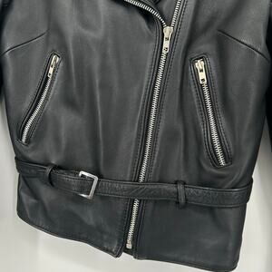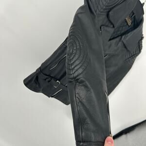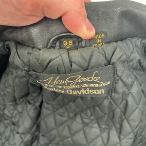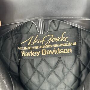 Vintage 80s women's black leather Hein Gericke X HARLEY DAVIDSON Motorcycle Biker Jacket w/ Quilted Lining Size 38