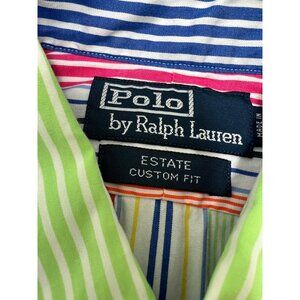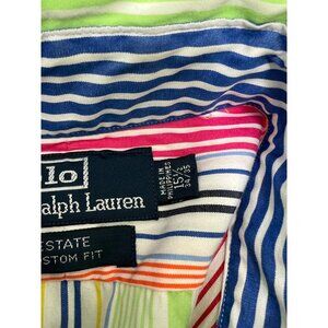 VTG 90 Polo Ralph Lauren Shirt 15.5 Estate Custom Fit Rainbow Color Block Stripe