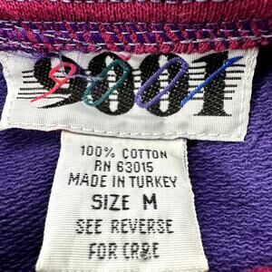 VTG 9001 Retro Cropped Hoodie 1/2 Zip Colorblock Pullover 100% Cotton Multi M