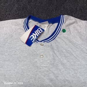 VTG 90S NOS BIKE HENLEY SHIRT ADULT XL GRAY WITH BLUE RINGER STRIPE DEADSTOCK