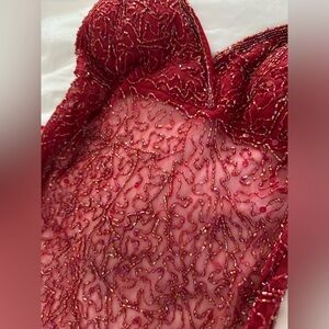VTG 90s 00s Y2K Fairy Deep Red Beaded Halter Cami Tank V Neck Sz S-M Festival