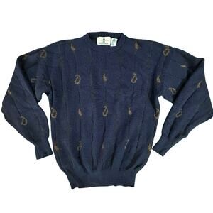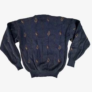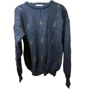 Vintage 90's Austin Reed London England 100% Merino Wool Crewneck Pullover Navy Paisley Sweater Men's XL Grandpa Cosby Biggie Preppy Chore