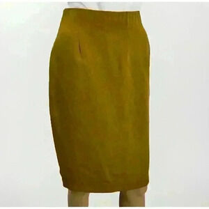 VTG 90s 100% Silk CLASSIQUES FOR NORDSTROM Olive Midi Skirt Sz 10 Lined Zipper