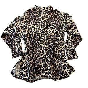 VTG 90s 100% Silk Clio Women's Button Up Leopard Blouse Size Medium