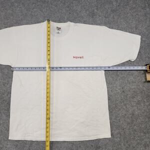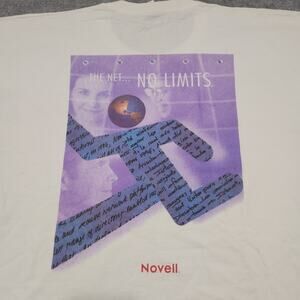 Selling Vintage VTG 90s 1990s Novell Netware Mens XL Computer Technology Software Promo T Shirt. IT HAS SOME STAINS (SEE PHOTOS). You can see the condition from the photos. You can get further information from looking at what is shown in the photos. Pricing low to sell fast. I offer combined shipping on multiple purchases. All purchases should arrive within 2 to 9 days. International buyers should expect longer shipping time. If there are any issues please do the right thing and message me before leaving feedback.