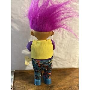 This is a vintage 9.5" Troll Doll from the 90s with pink hair, orange eyes, and a wind-up action that works. The doll is dressed as a drummer and made of plastic. It is a collectible item suitable for both girls and boys. **This doll does not have the drum!!