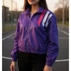 Vintage 90s Adidas track jacket purple velour faux suede made in Canada size small fits medium large cropped boxy retro 80s full zip embroidered logo streetwear