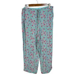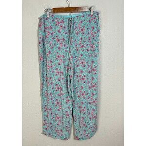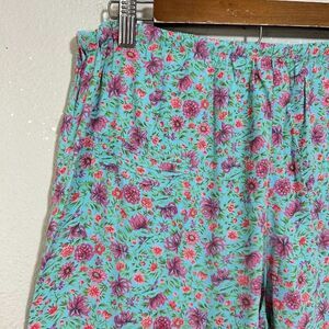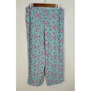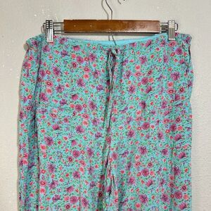 VTG 90s April Cornell Floral Pants S Blue 100% Rayon Cottagecore Straight Leg