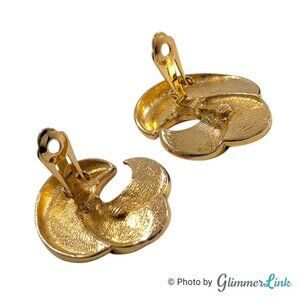 Vintage Avon "Swirl of Color" gold tone clip on earrings featuring a layered wavy swirl design accented with pink and purple enamel.