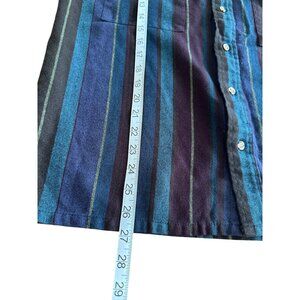Vintage 90s backpacker shirt featuring a striped pattern and long sleeves. This collared shirt is perfect for outdoor enthusiasts, offering both style and functionality with convenient pockets.