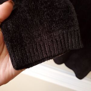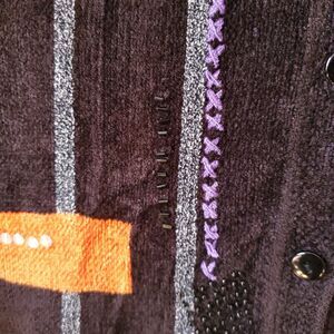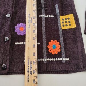 Black embellished Chenille Sweater Cardigan by Alfred Dunner size Small BUT Oversized