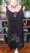 Flowy rayon & cotton blend, floral Hawaiian mini shift dress. Black with black & gold metallic palm trees embroidery detailing. Scalloped crochet trimming. Scoop neck, with lace up tie front. Side slits. Mini, above the knee length. Gathered stretchy back neckline. Super soft! 60% cotton 40% rayon. Hand wash.
