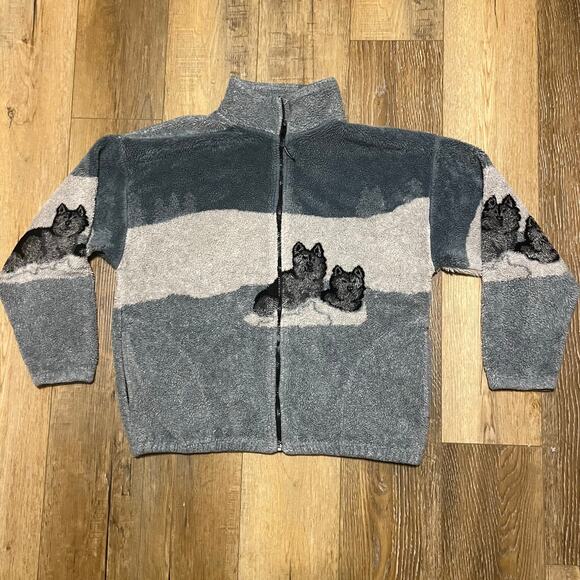 VTG 90s Black Mountain Wolf Fleece Jacket
