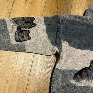 VTG 90s Black Mountain Wolf Fleece Jacket L Gray Wolves Nature AOP USA Outdoor