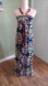Black, with an all- over vibrant colorful folk art prints, of birds & hearts. Very retro, 70s inspired, Mexican folk art prints, in lime green, teal, blue, green, yellow, orange & pink colors. Long, maxi length. Halter neckline, with ling adjustable ties that can be worn in several ways- left hanging or tied in the front, or can wrap around to tie in the back. Back v neck. Flowy.