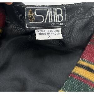 VTG 90s Blanket Stripe Wool Suit Vest Red Yellow Green Colorful Tribal M/L 42