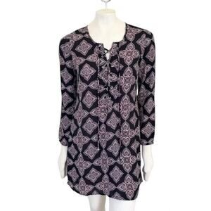 VTG 90s CHARLOTTE RUSSE Retro Medallion Print Semi Sheer Shift Dress SZ S