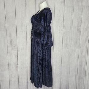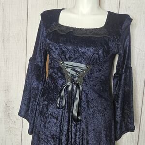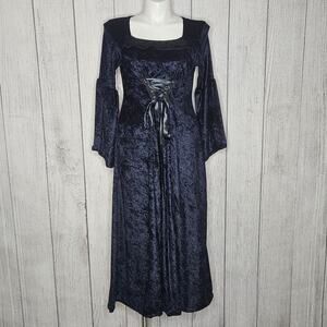 VTG 90s CYKXTEES Velvet Renaissance Goth Maxi Dress Bell Sleeves Corset Witch XL