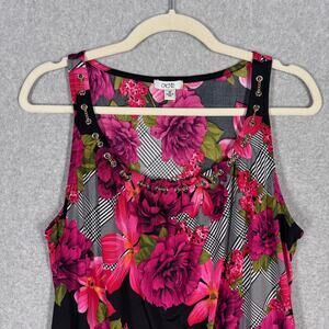 VTG 90s Cache Tank Top Medium Floral Chain Neck Maximalist Abstract Mob Y2K Womens Black Pink Stretch Made USA Pink Black White Green Stretch Cami