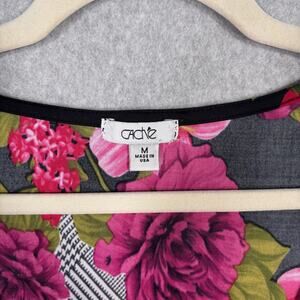 Features a vibrant pink and green floral print over black and geometric houndstooth background