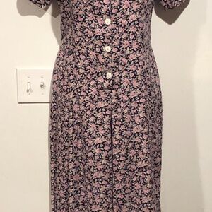 Adorable and sweet!! Lace collared, oversized jumper with v neck and button-down front. Wide legs, about mid calf length. The back has sashes, that you can tie up to make the waist come in where you want it, so it doesnt just look like a sack. Super cottage core, everyday in the garden look~ Can be dressed up/accessorized for a grunge look as well. Does NOT have shoulder pads. (may have originally, but it does not have them now)