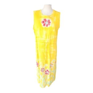 VTG 90s Campers Handpainted Floral Yellow Long Maxi Dress Flowers Teacher
