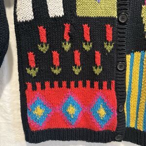 VTG 90s Cardigan Sweater JP Williams Wearable Art Patchwork Artsy Bright Funky L