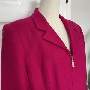 VTG 90s Casablanca Hot Pink Blazer Jacket Sz 10 Barbie Wool Zip Preppy Academia