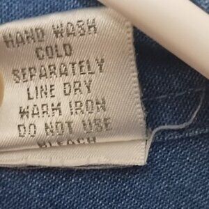 Cotton, denim, lightweight, measurements are 22" pit to pit, 28" length and 24" sleeve, raised velvet and embroidery, button closure, buttons are also on cuffs, they are metallic and intact, collared, red, yellow, orange embroidered flowers, round relaxed hem, oversized, super cute, good condition and quality