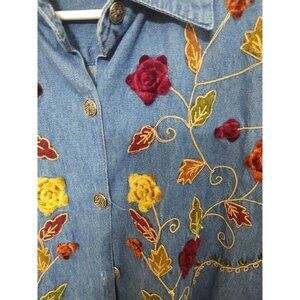 VTG 90s Casual Corner Embroidered Floral Lng Slv Button Up Denim Shirt S Cottage
