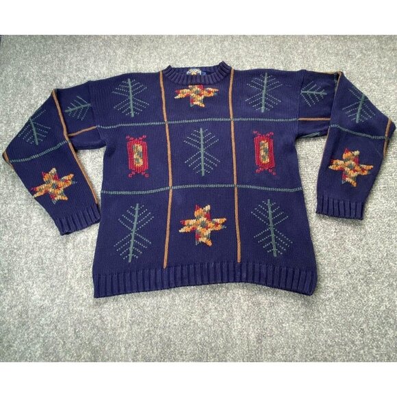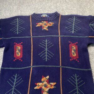 VTG 90s Chaps Ralph Lauren Sweater Men L Navy Southwestern Geometric Boho Retro
