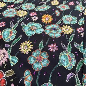 Vintage 90s Chico's black and multicolor floral embroidered beaded sequin sparkly boho fairy maxi skirt - Size Large/X-Large, see measurements below!