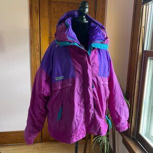 VTG 90s Columbia 3-in-1 Colorblock Ski Jacket Purple Pink Teal USA L Hooded Boho