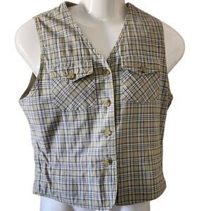 VTG 90's Columbia Reversible Plaid and Tan Button up Vest Women's Size Medium