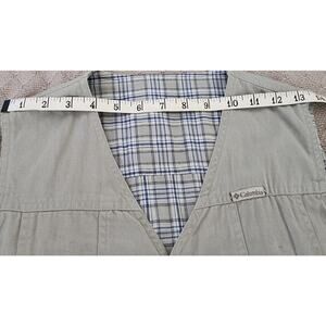 Step back in time with this awesome vintage 90s Columbia reversible vest! This unique piece features a stylish plaid pattern on one side and a classic tan color on the other, offering two great looks in one.