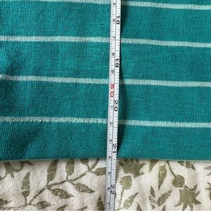 scoop neck, retro, 90s, rolled and sewed sleeve hems, stripes teal and light blue