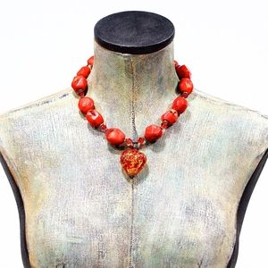 Chunky natural coral, glass, and 925 sterling silver necklace and earring set