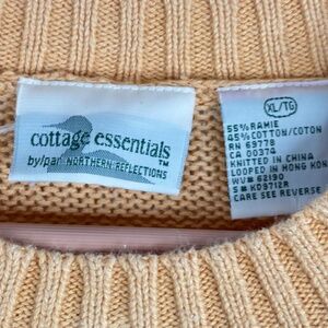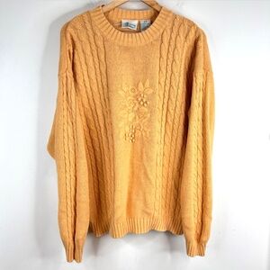 VTG 90s Cottage Essentials Sweater XL Yellow Floral Cable Knit Granny Retro Cozy