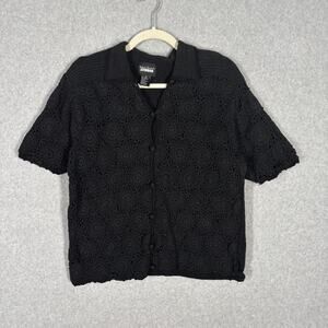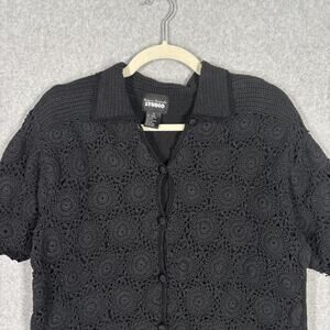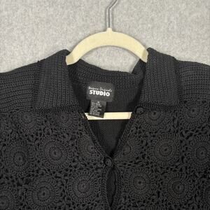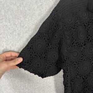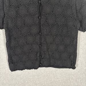 Designers Originals Studio VTG 90s Crochet Cardigan Sweater Medium Coquette Granny Cottage Whimsigoth Twee Black Short Sleeve
