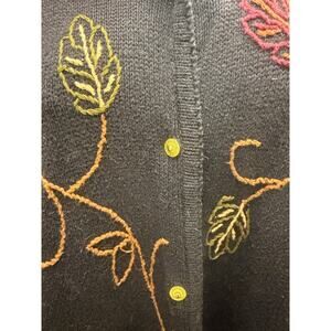 VTG 90's Crystal Kobe L Fall Cardigan Sweater Leaves Button Front Embroidered