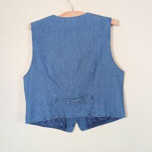 VTG 90s David Brooks Denim Vest Floral Embroidered Lined sz L Cottagecore Fairy