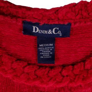VTG 90s Denim & Co Chenille Velour L/S Top Sweater Cable Knit Lattice-Sleeve