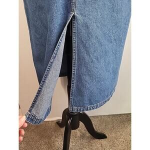 VTG 90s Denim Embroidery Floral Midi Dress L Blue Cottage Country Western Rustic