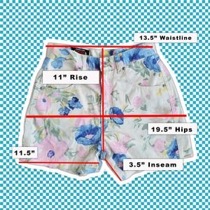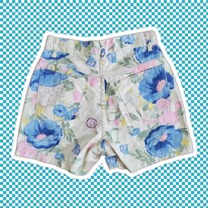 These are a pair of vintage floral pattern denim shorts. Very 90s style! Perfect to wear with a t-shirt or a crop top!