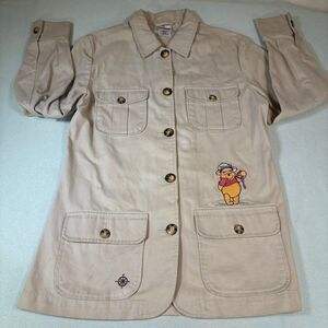 VTG 90s Disney Store Winnie The Pooh Khaki Safari Button Up Jacket Coat Small