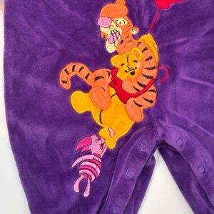 VTG 90s Disney Store Winnie the Pooh Romper 6M Embroidered Velour Tigger Piglet