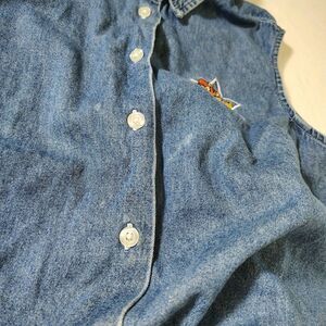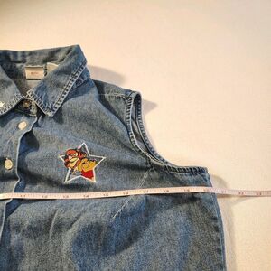 VTG 90s Disney Tigger Embroidered Sleeveless Denim Shirt Womens L Y2K Pooh Top