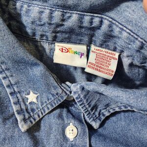 Vintage Disney Women's Denim Button Down Embroidered Shirt Featuring Tigger and Pooh Size L